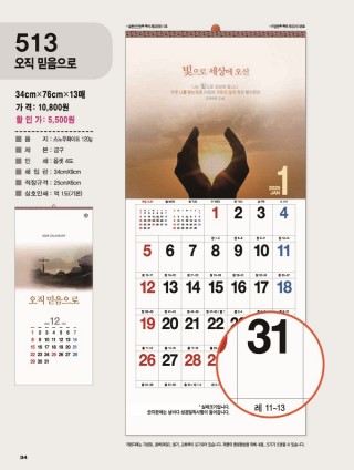 3) 타사 달력은 교회에 배송된 카다로그에서 선택. (일부 카다로그 불가)