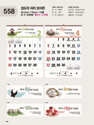 3) 타사 달력은 교회에 배송된 카다로그에서 선택. (일부 카다로그 불가)